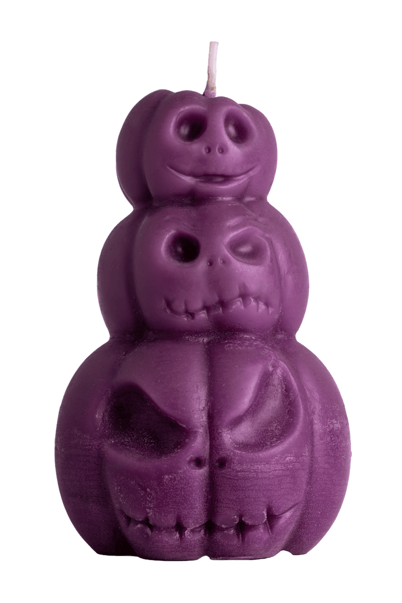 Vela de cera natural en forma de calabazas de halloween, un diseño festivo y divertido, perfecto para dar un toque espeluznante a tu decoración de halloween.