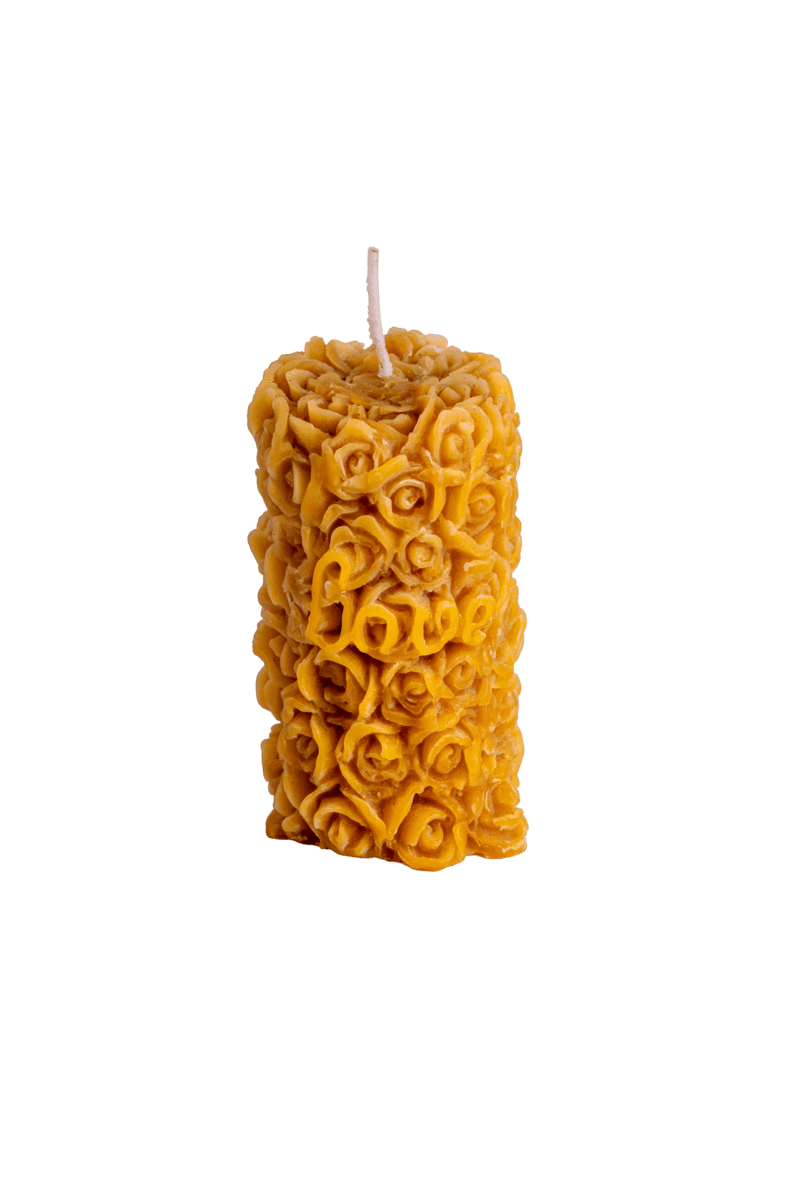 Vela de cera natural con el diseño de Love en Flores, perfecta para crear un ambiente romántico y acogedor
