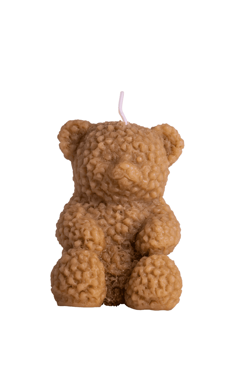 Vela de cera natural en forma de osito. Un diseño tierno y encantador, perfecto para añadir un toque de dulzura y personalidad a cualquier rincón de tu hogar.